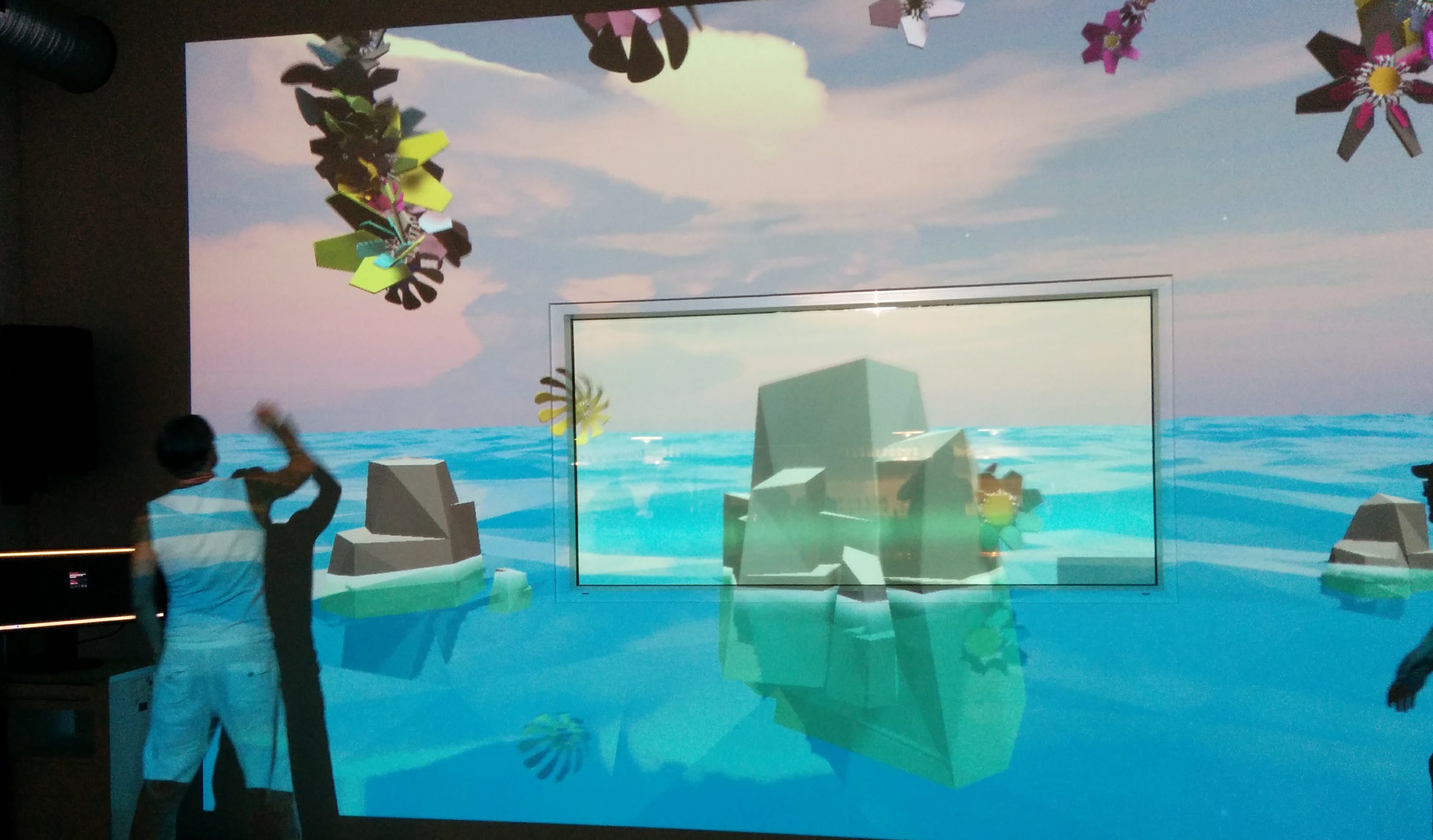 die durch einen Beamer auf die Wand projizierte Szene beeinflussen konnten.